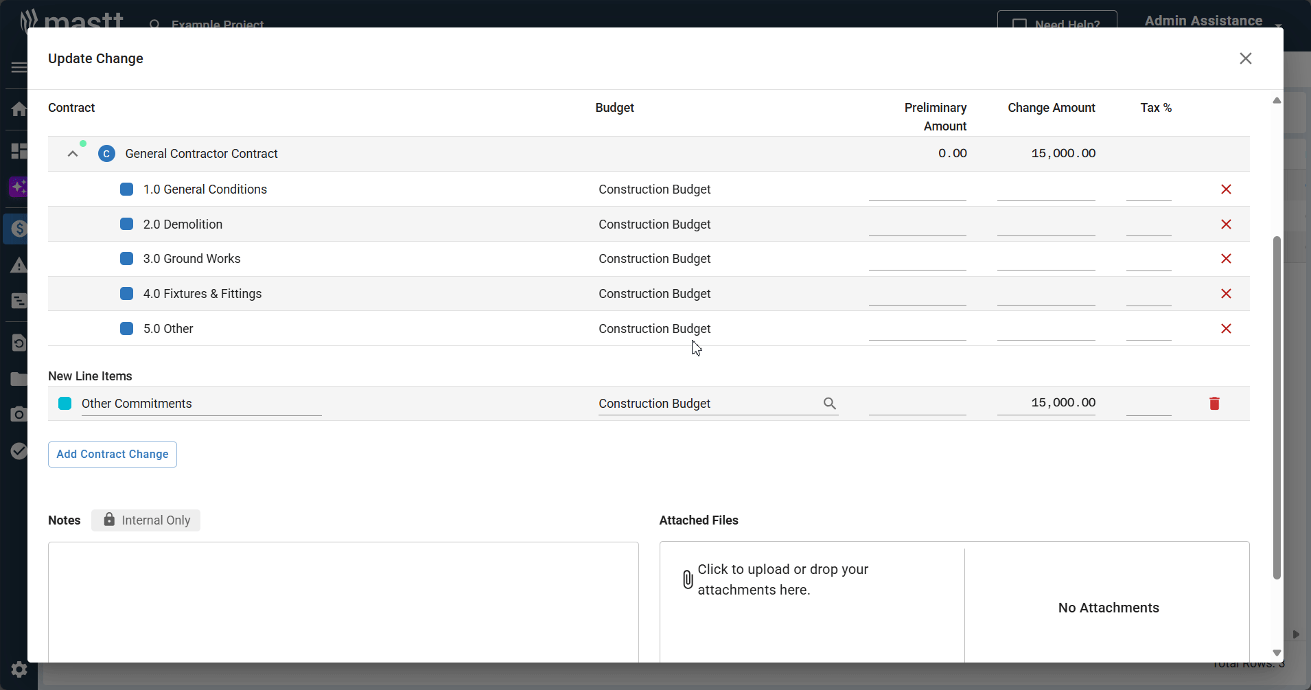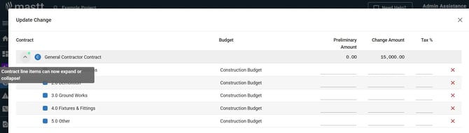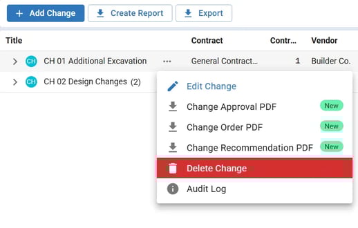 This guide shows you how to update existing changes and permanently remove changes when they're no longer needed. You can edit change details, update contract line items, add new line items, and delete changes from your project.