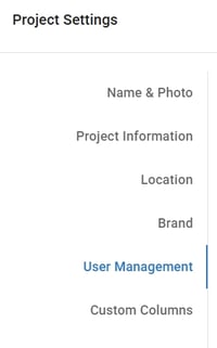 Alternatively, from inside your project or program, click the Settings icon (cog) in the bottom left navigation bar. In the Settings modal, click the User Management tab.