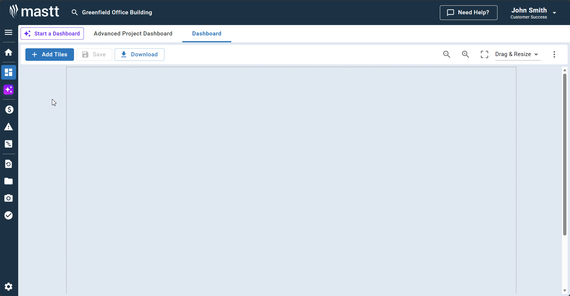 - Click the + Add Tiles button in the top right area of the Dashboard