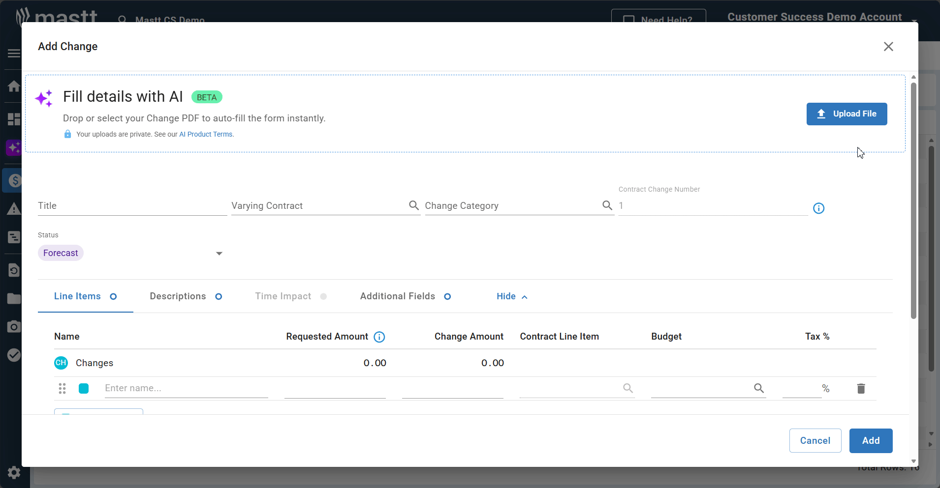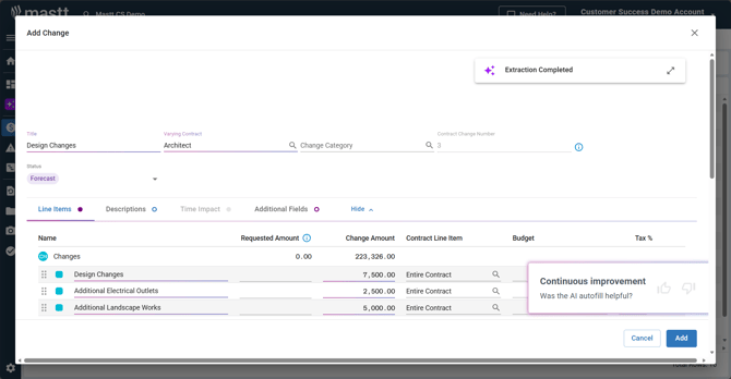 Need help? Contact Mastt Support for additional assistance with AI Pre-fill or change orders.