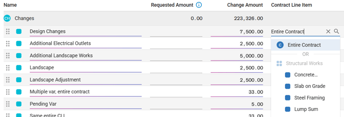 Result: The Add Change form opens. Selecting from a contract pre-select that contract for you.
