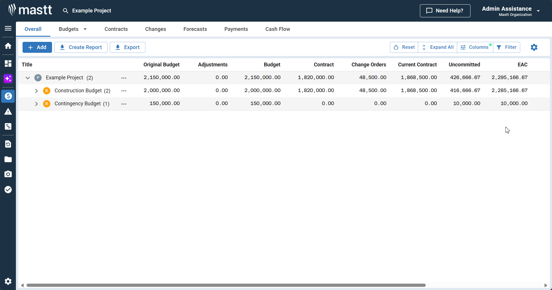Need help? Contact Mastt Support for additional assistance with Estimate at Completion management.