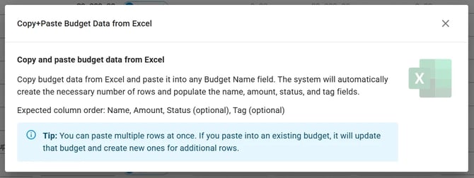 - Copy and Paste (recommended for multiple budget lines)
