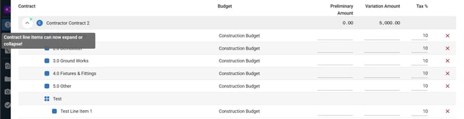 - Click the chevron icon next to the contract name to expand and view line items