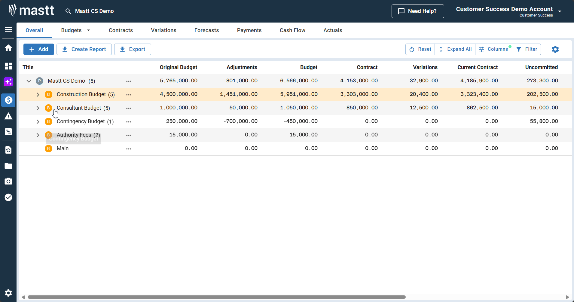 - From the Overall page: Expand the budget and contract containing the variation, click the Action button next to the variation, and select Edit Variation