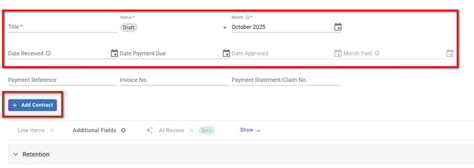 - Contract: Click + Add Contract and select the contract where you're releasing retention