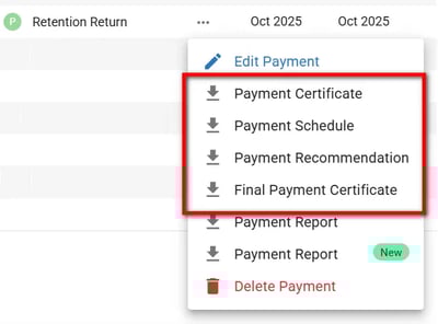 Returning retention releases previously held funds back to contractors once contract conditions are met—like project completion or the end of a defects liability period. This process uses the standard payment workflow with a negative retention amount.