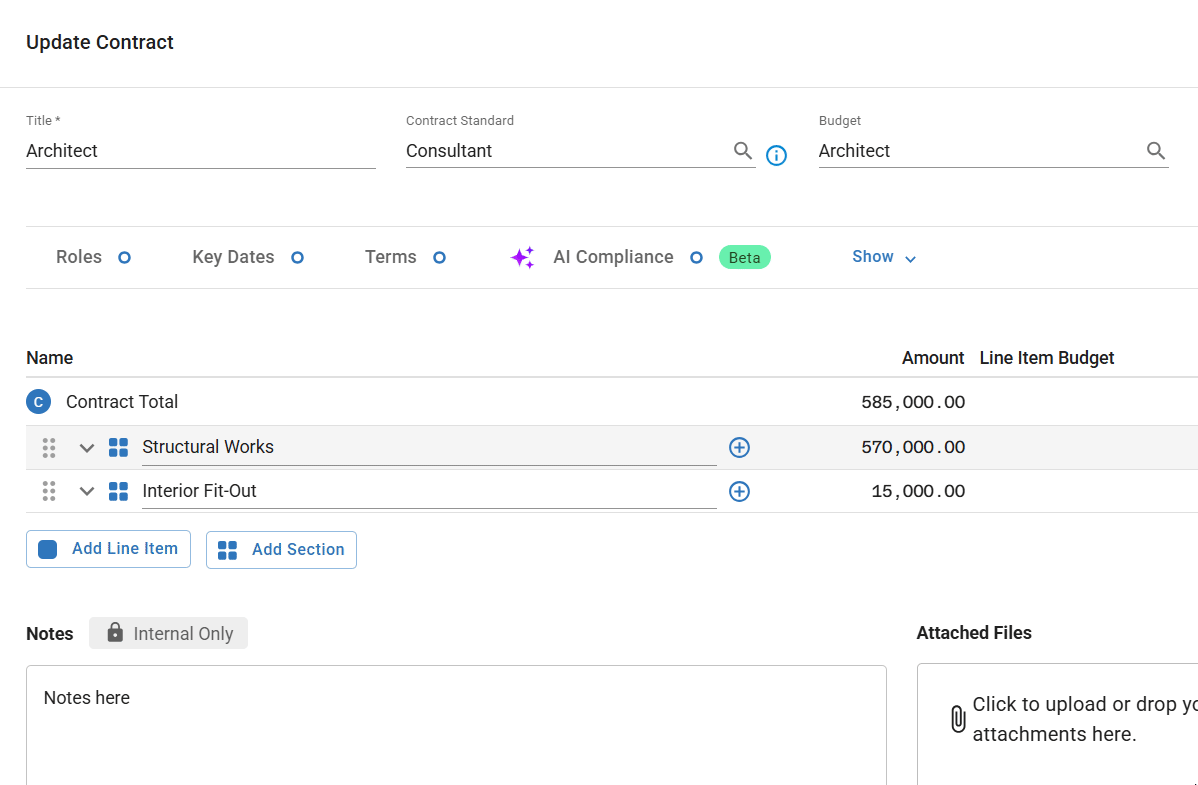 Tax and retentions are essential for accurate payment processing in construction projects. This guide shows you how to apply tax at contract and line-item levels, set up payment retentions, and understand how these work together in your payment calculations.