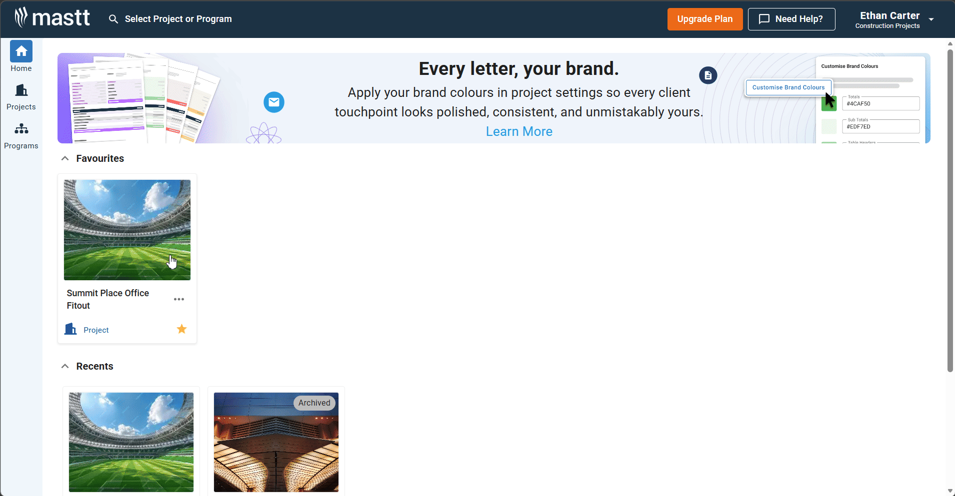 - From the Mastt Home page, click on a project tile to open your project